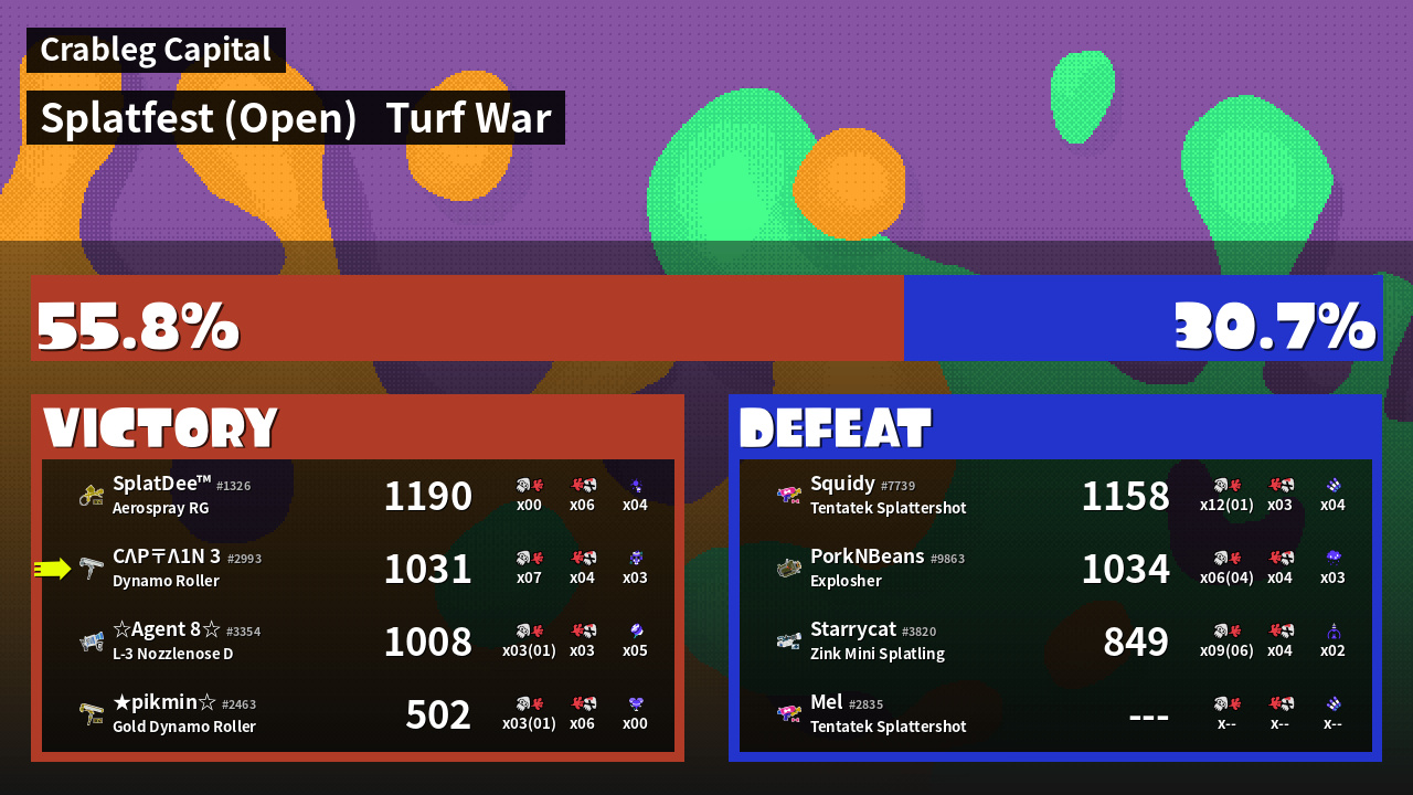 | Mode | Turf War - Splatfest (Open) | ||