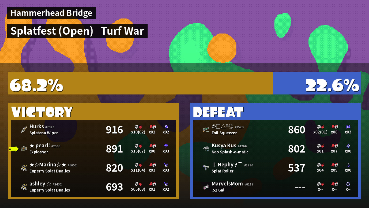 | Medals | #1 Overall Splatter #1 Popular Target #1 Enemy Splatter | ||