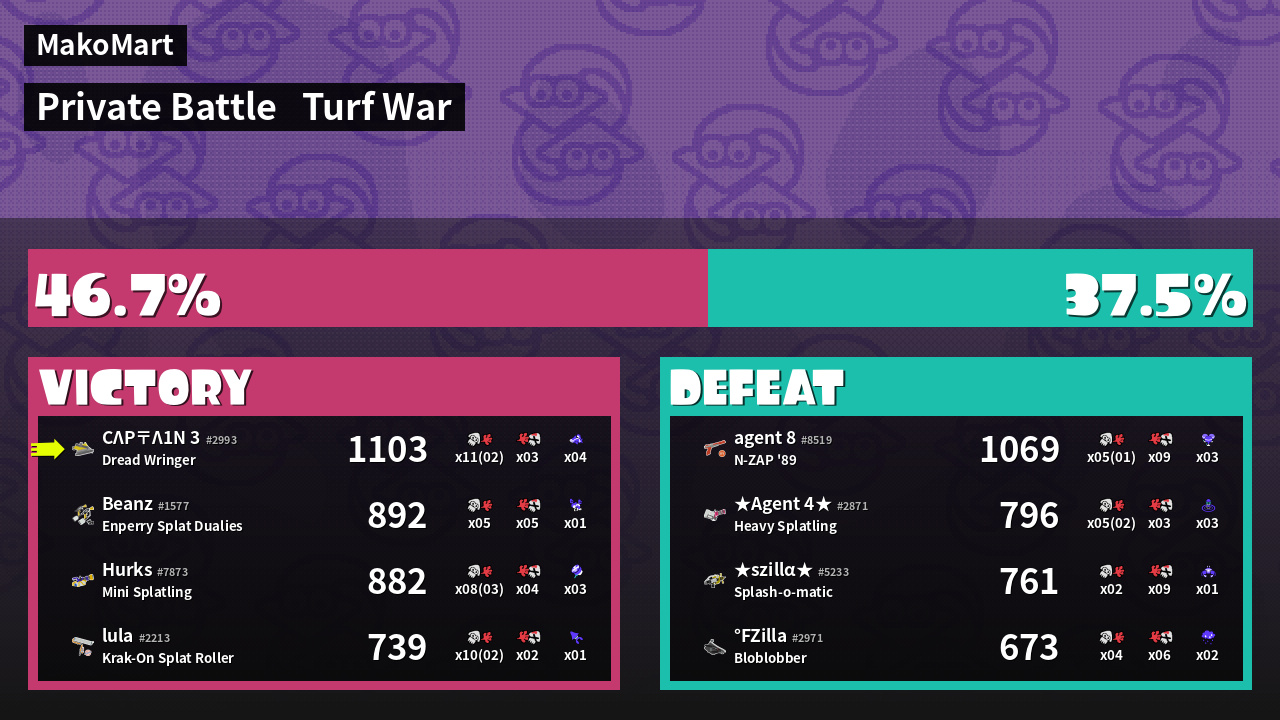 | Mode | Turf War - Private Battle | ||