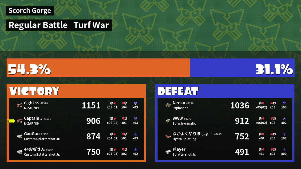 | Mode | Turf War - Regular Battle | ||