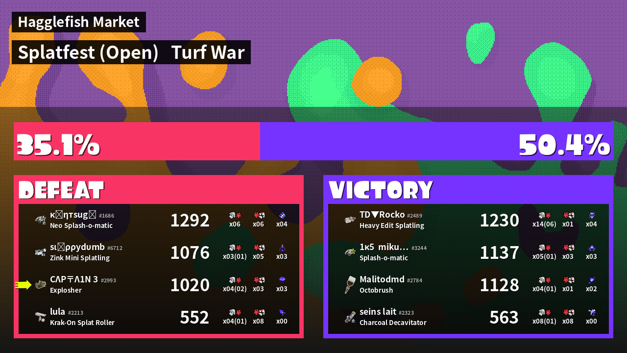 | Medals | #1 Popular Target #1 Splat Assister #1 Base Defender | ||