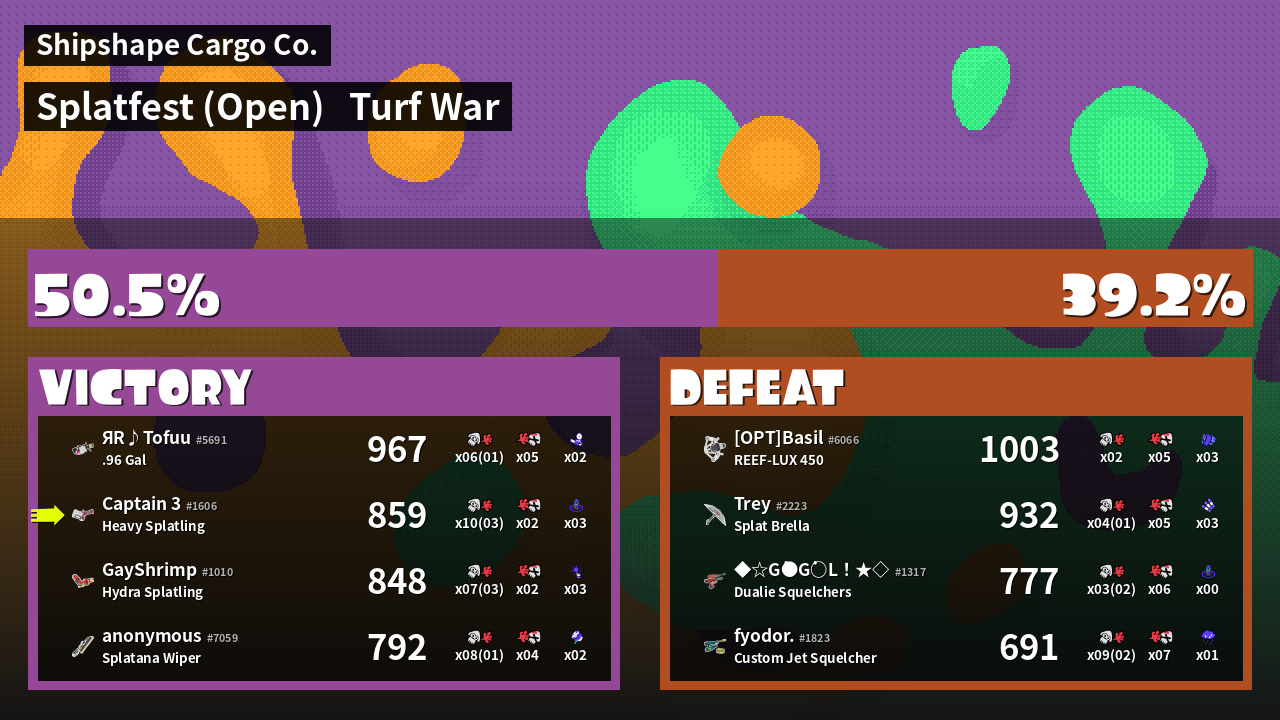 | Medals | #1 Overall Splatter #1 Popular Target #1 Super Jump Spot | ||