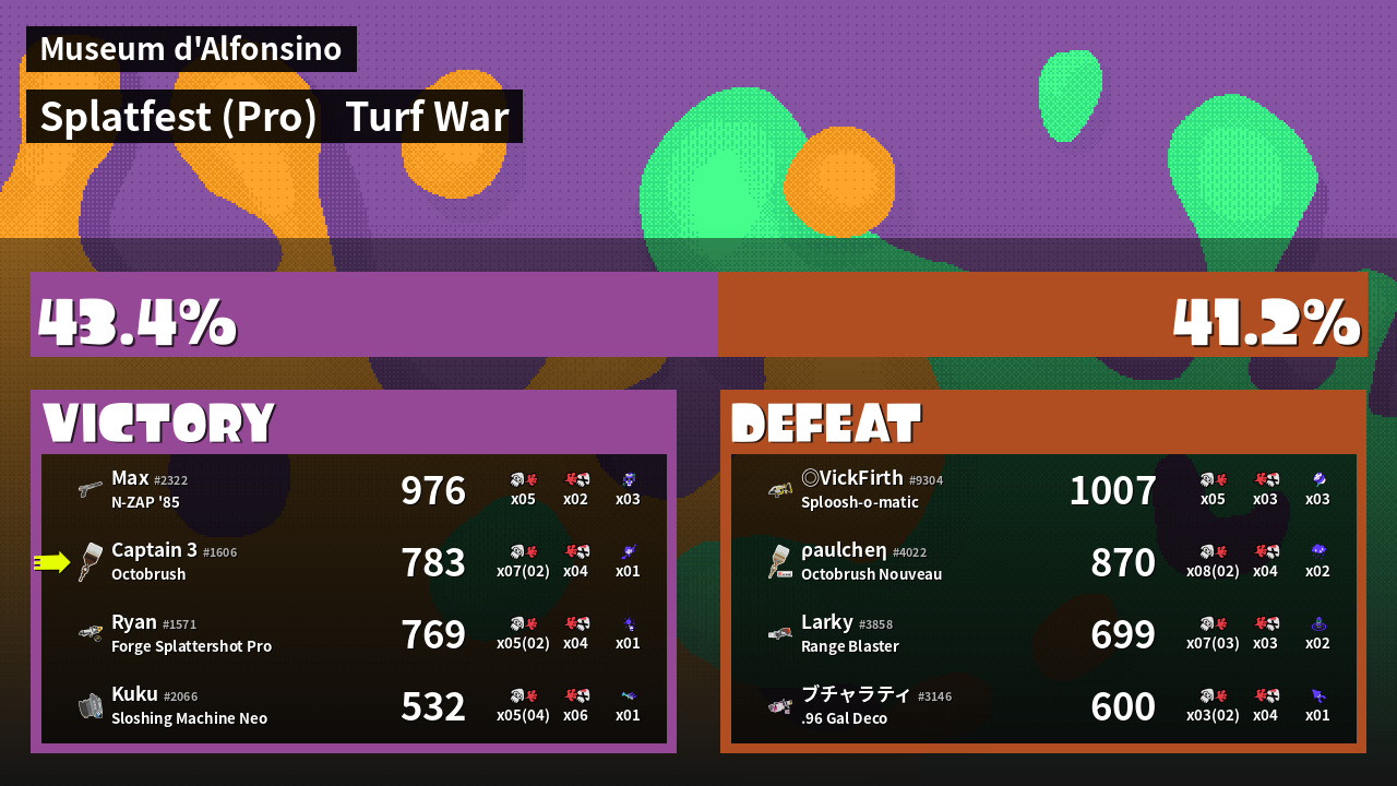 | Medals | #1 Overall Splatter #1 Enemy-Base Inker #1 Super Jump Spot | ||