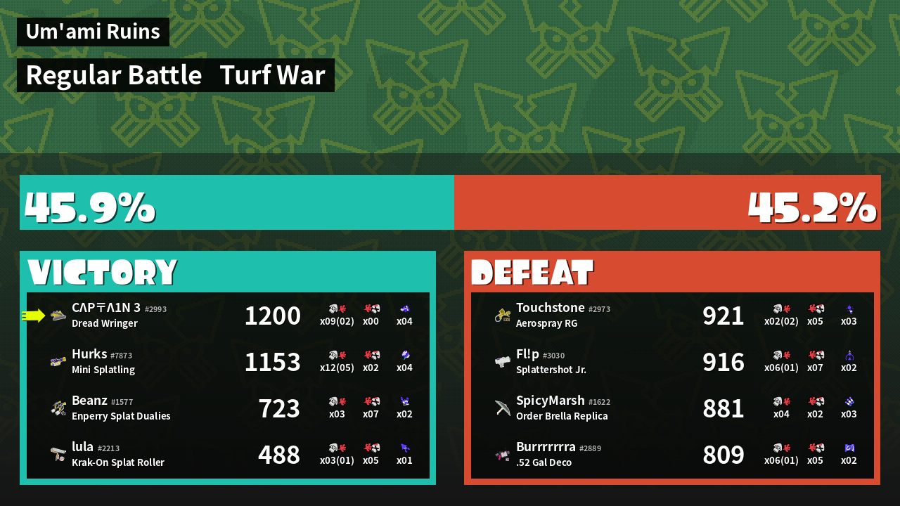| Mode | Turf War - Regular Battle | ||