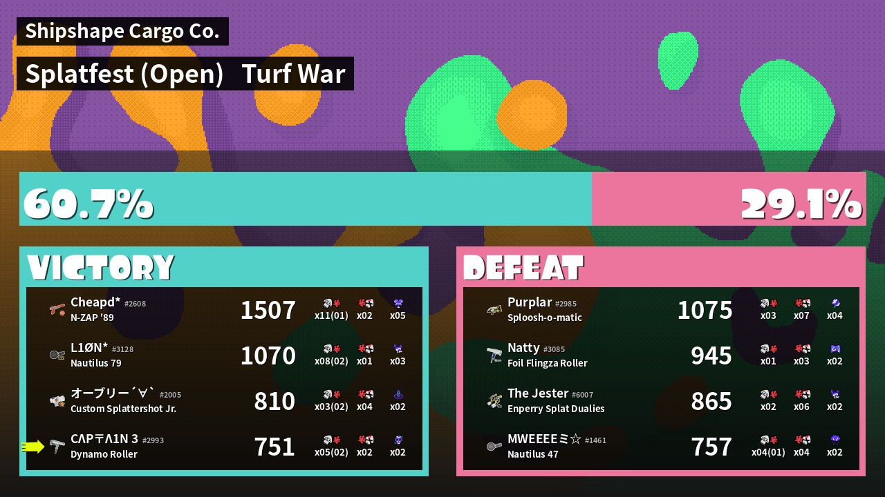 | Medals | #1 Popular Target #1 Splat Assister #1 Ground Traveler | ||