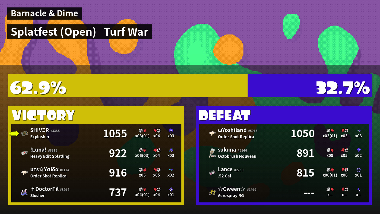 | Medals | #1 Turf Inker #1 Ink Consumer #2 Enemy-Base Inker | ||