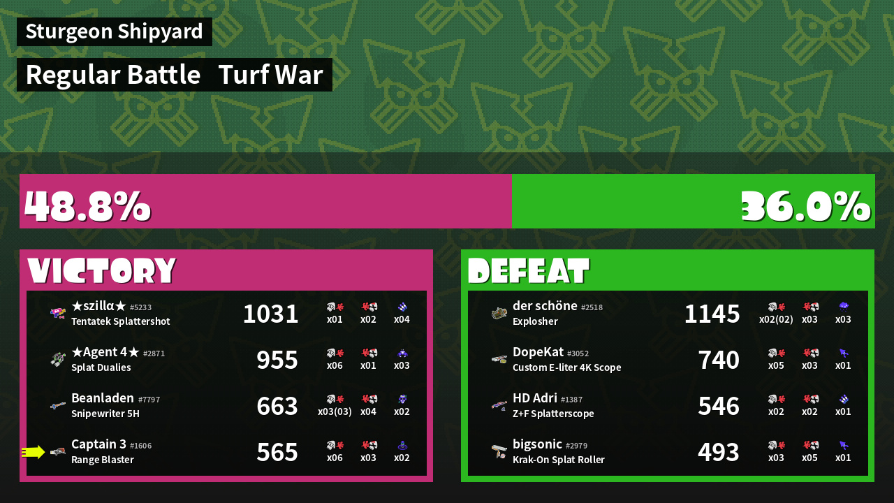 | Medals | #1 Overall Splatter #1 Popular Target #1 Enemy Splatter | ||