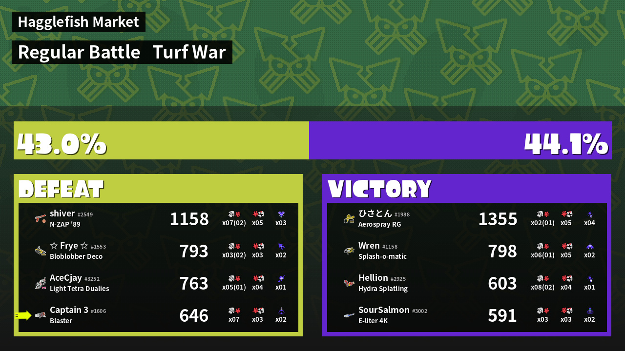 | Medals | #1 Overall Splatter #1 Popular Target #1 Enemy Splatter | ||