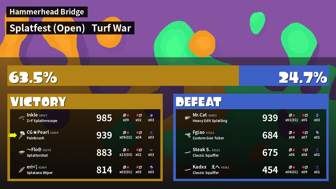 | Medals | #1 Home-Base Inker #1 Base Defender #2 Overall Splatter | ||