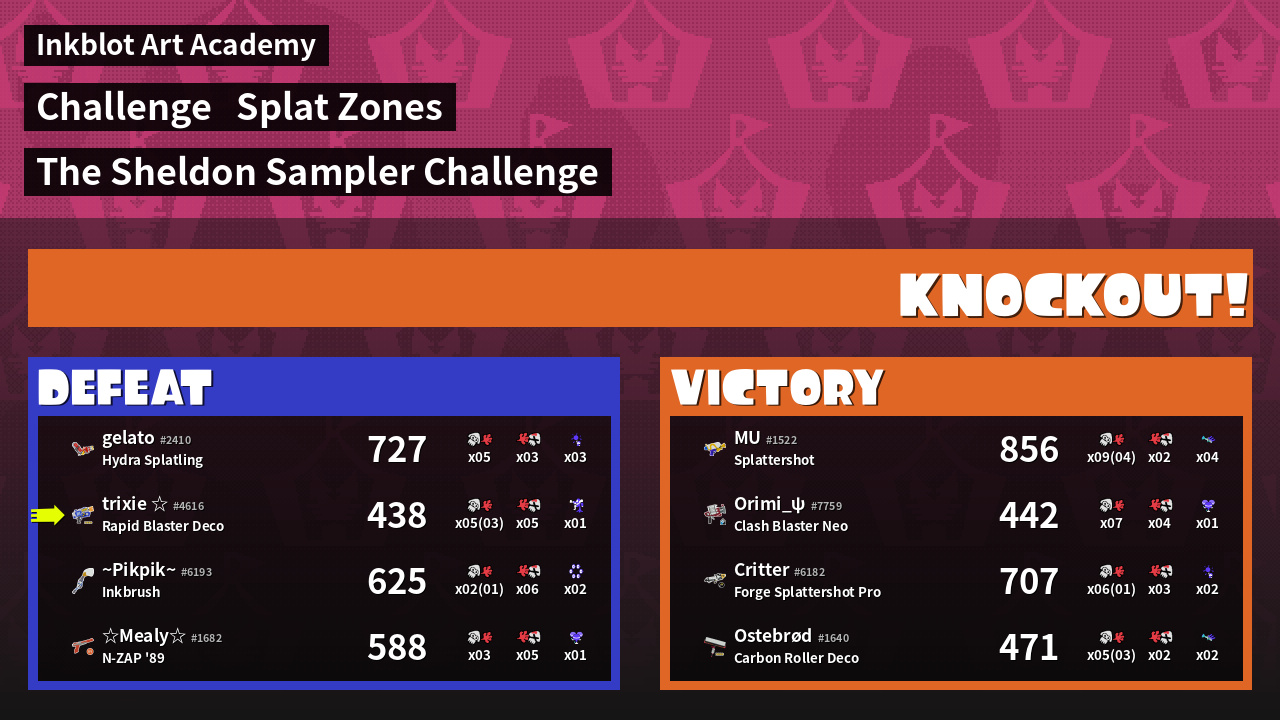 | Medals | #1 Overall Splatter #1 Splat Assister #1 Ink Consumer | ||