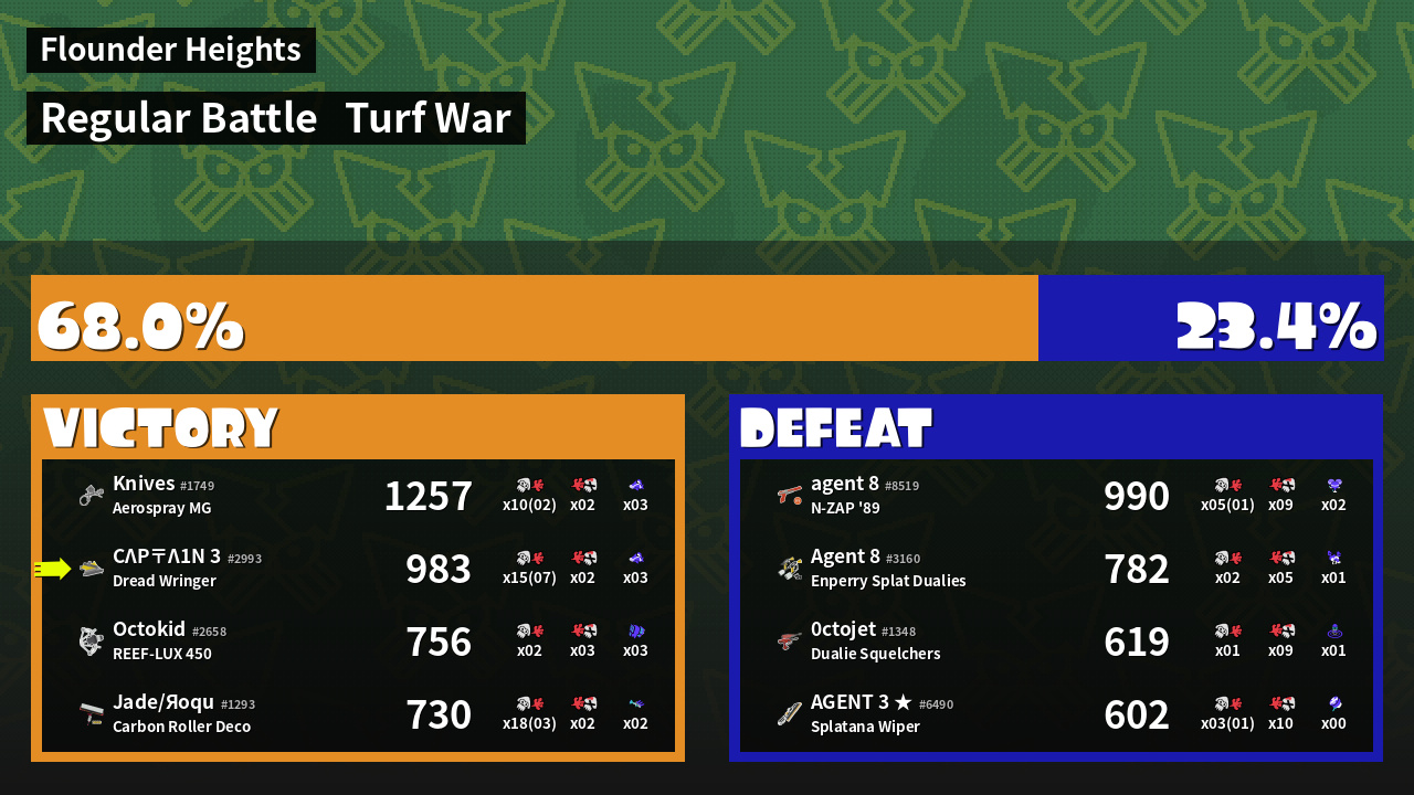 | Mode | Turf War - Regular Battle | ||