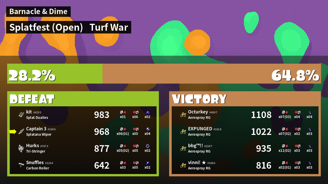 | Medals | #1 Overall Splatter #1 Popular Target #1 Home-Base Inker | ||
