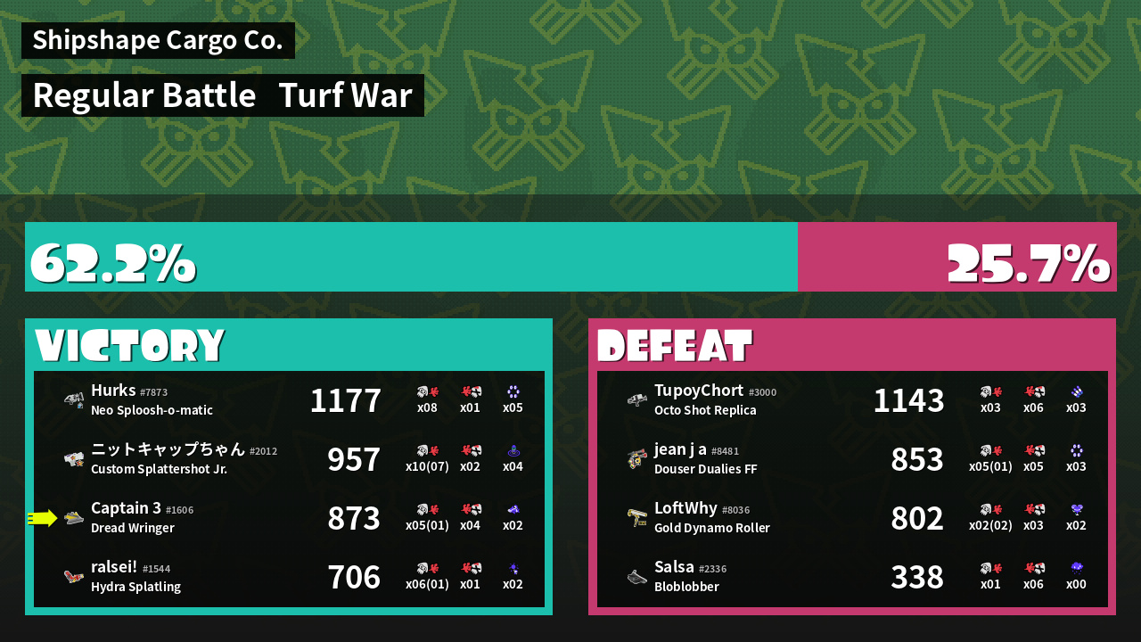 | Medals | #1 Enemy-Base Inker #2 Popular Target #2 Splat Assister | ||