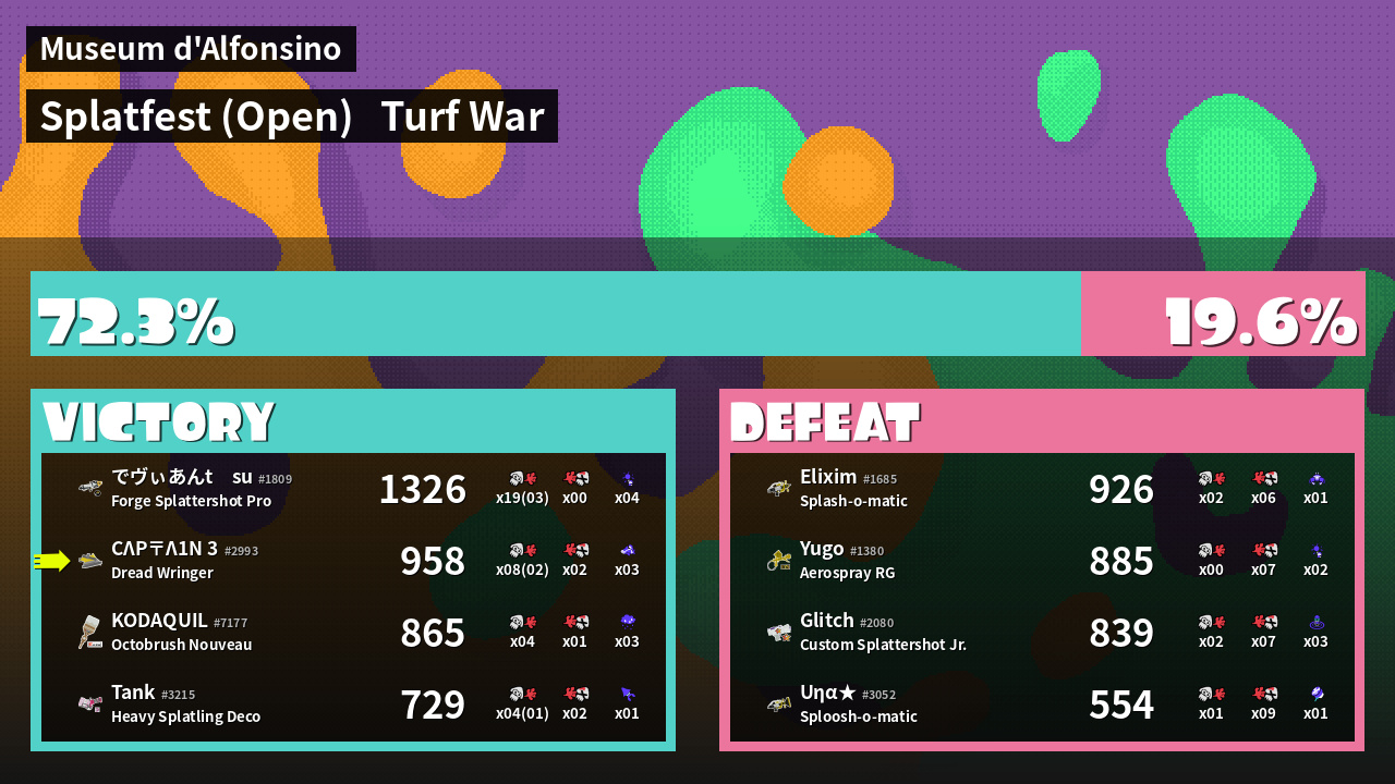| Medals | First Splat! #2 Overall Splatter #2 Turf Inker | ||