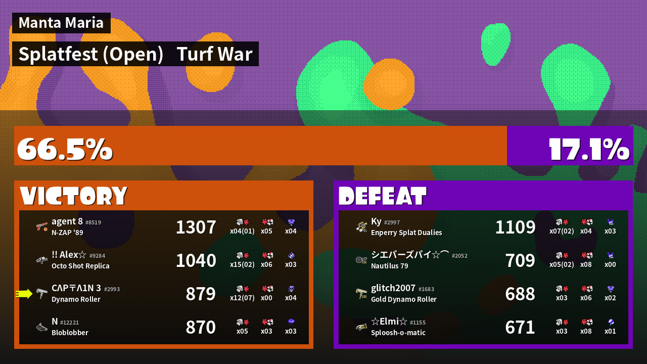 | Medals | #1 Super Jump Spot #1 Splat Assister #1 Tacticooler User | ||