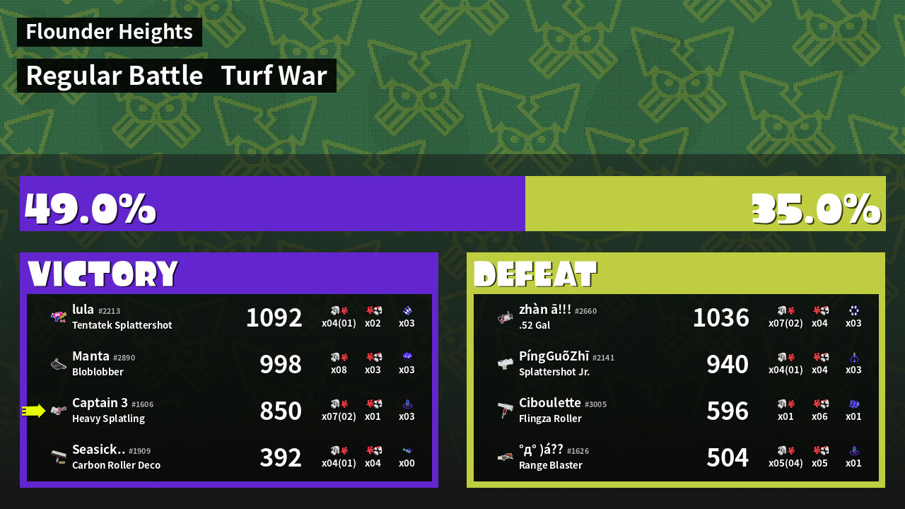 | Mode | Turf War - Regular Battle | ||