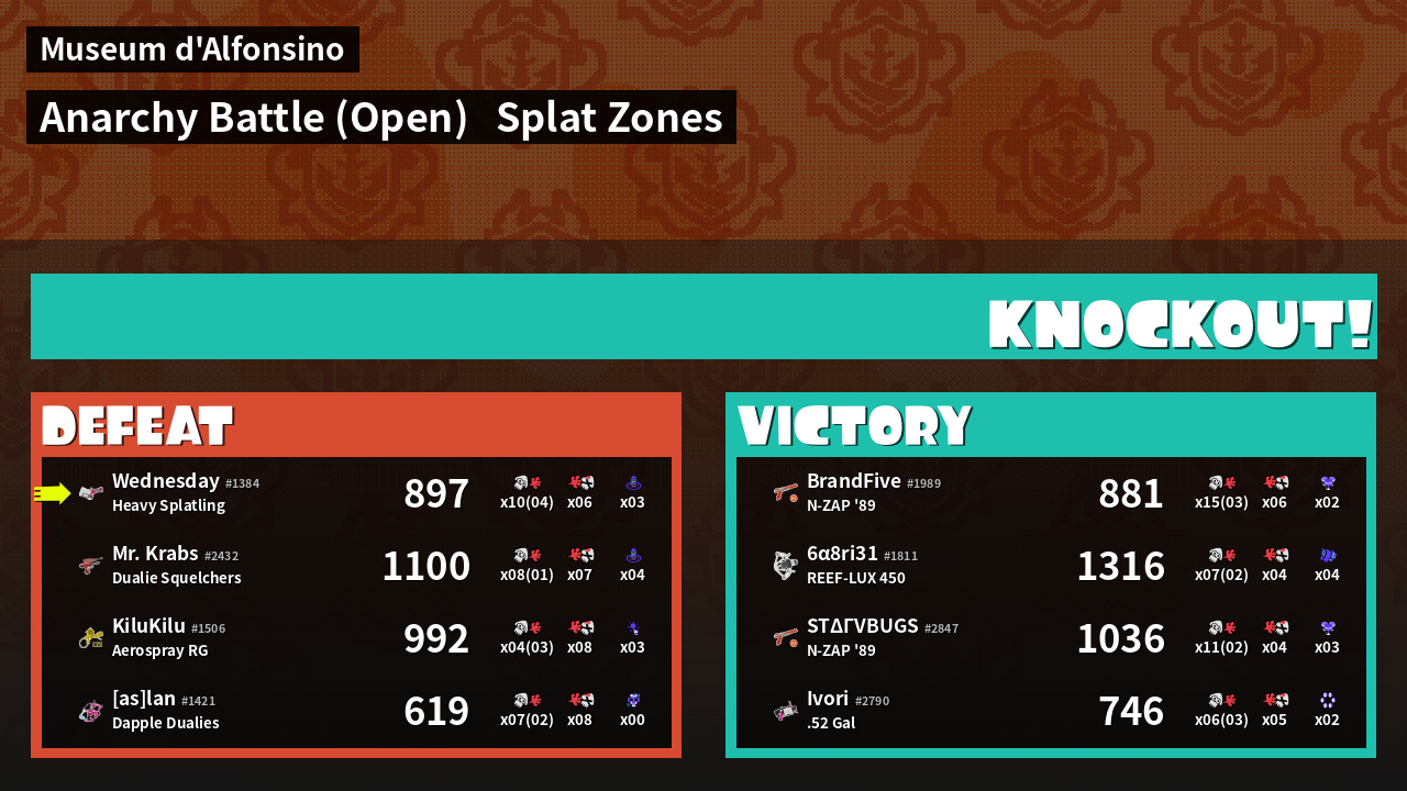 | Mode | Splat Zones - Anarchy Battle (Open) | ||