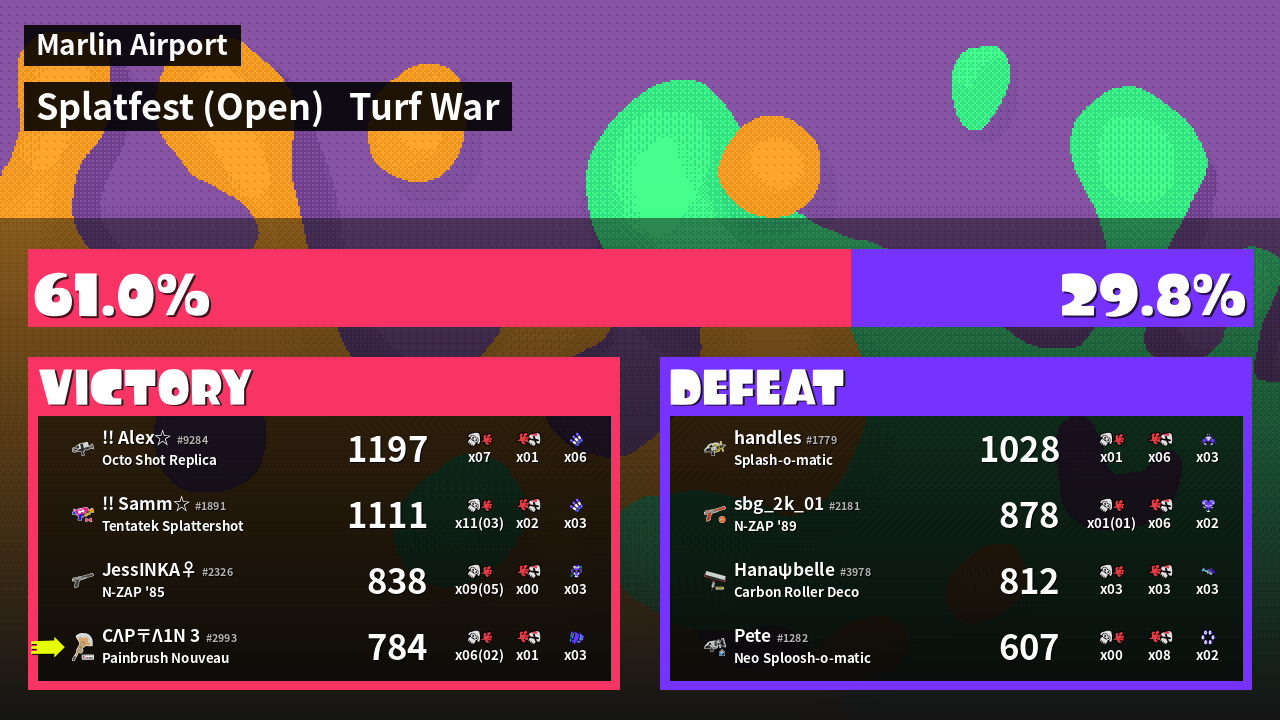 | Medals | #1 Home-Base Inker #1 Tenta Missiles User #2 Super Jump Spot | ||