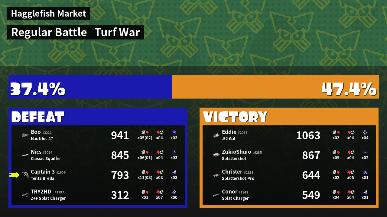 | Medals | #1 Overall Splatter #1 Popular Target #1 Enemy Splatter | ||