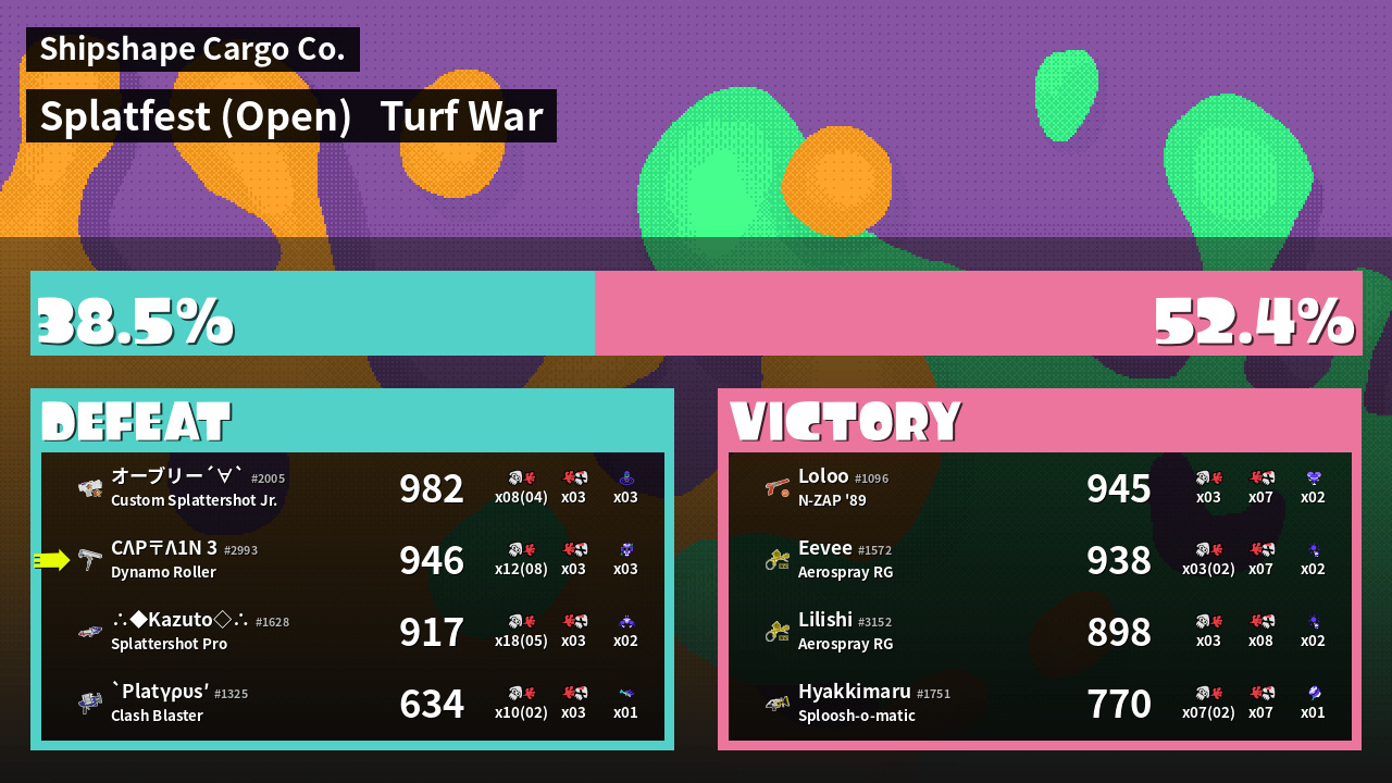 | Medals | #1 Splat Assister First Splat! #1 Tacticooler User | ||