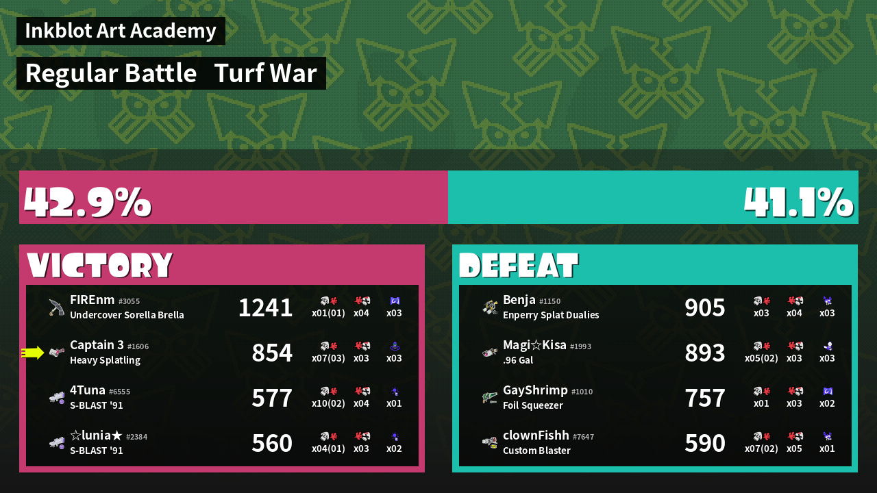 | Medals | #1 Splat Assister #1 Wave Breaker User #2 Overall Splatter | ||