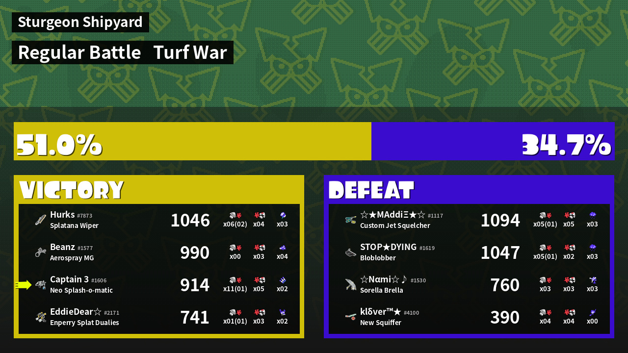 | Medals | #1 Overall Splatter #1 Enemy Splatter #1 Ink Consumer | ||