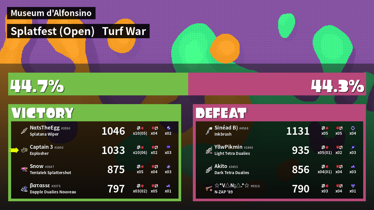 | Medals | #1 Overall Splatter #1 Popular Target #1 Super Jump Spot | ||