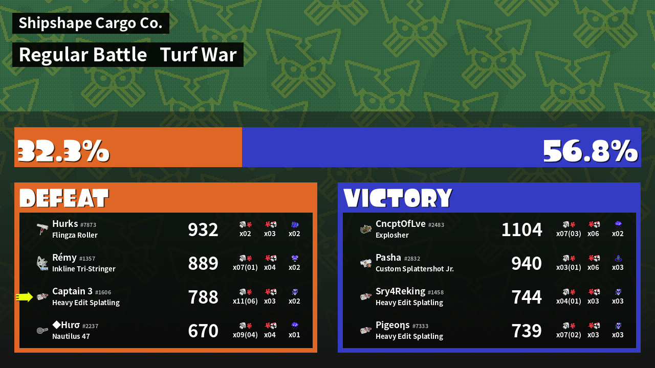 | Weapon | Heavy Edit Splatling ( Curling Bomb / Tacticooler) | ||
