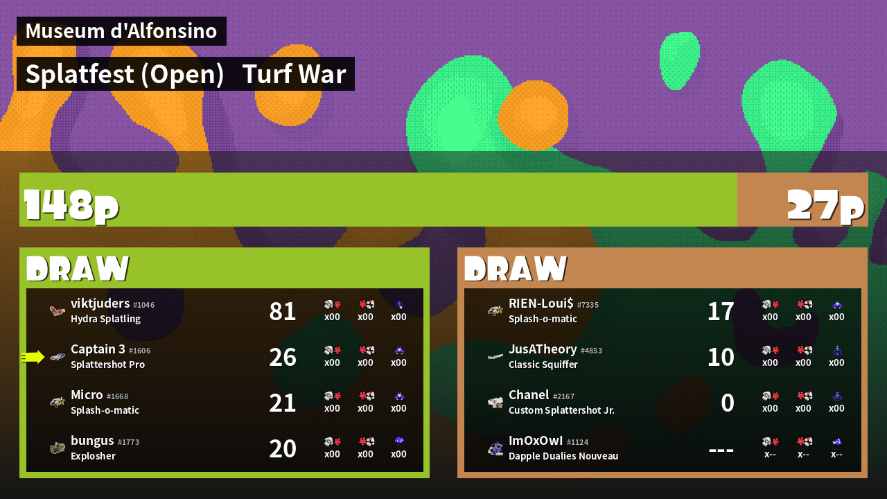 | Weapon | Splattershot Pro ( Angle Shooter / Crab Tank) | ||