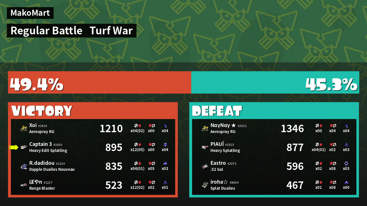 | Mode | Turf War - Regular Battle | ||