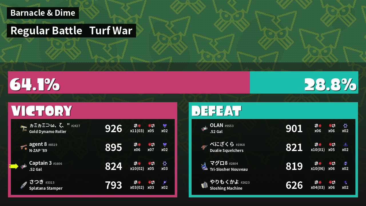 | Mode | Turf War - Regular Battle | ||