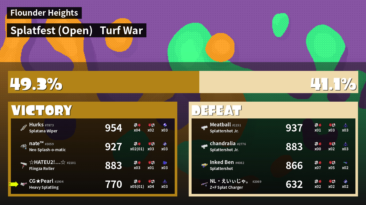 | Medals | #1 Overall Splatter #1 Popular Target #1 Home-Base Inker | ||