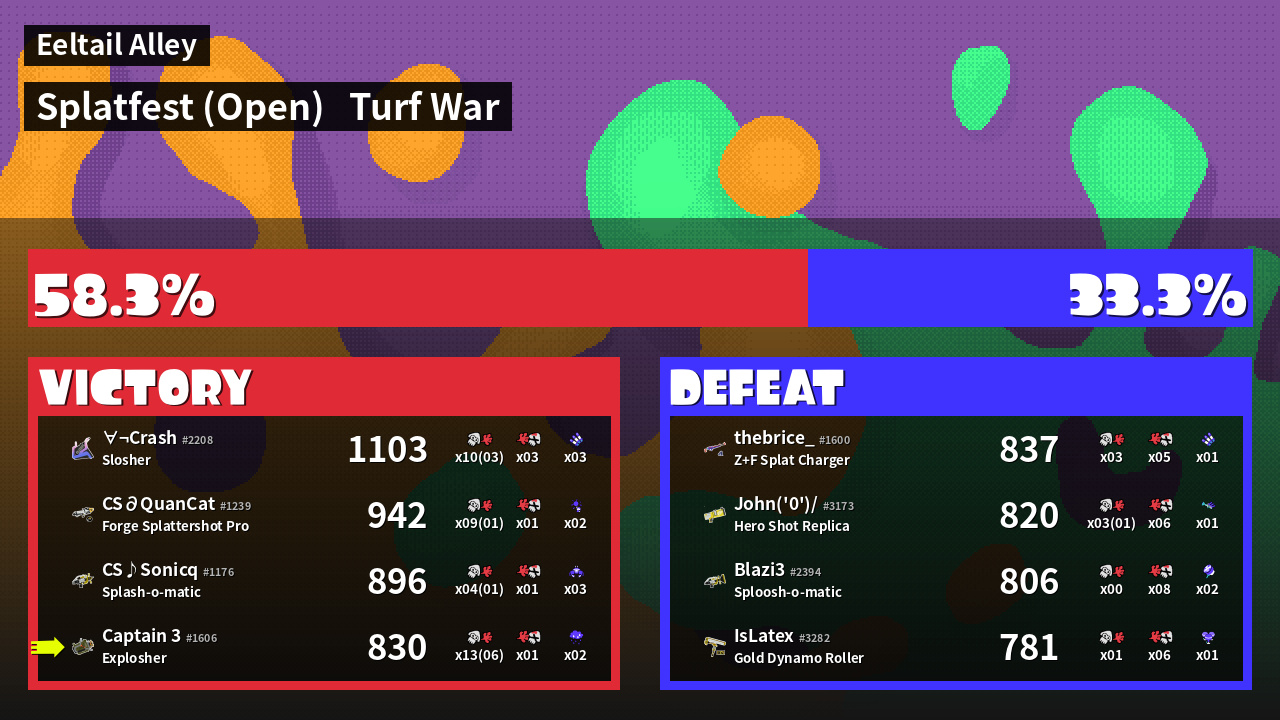 | Medals | #1 Overall Splatter #1 Popular Target #1 Splat Assister | ||