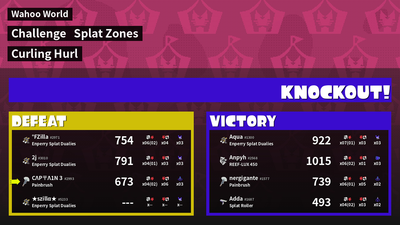 | Medals | #1 Splat Zone Guard #1 Splat Assister #1 Ink Consumer | ||