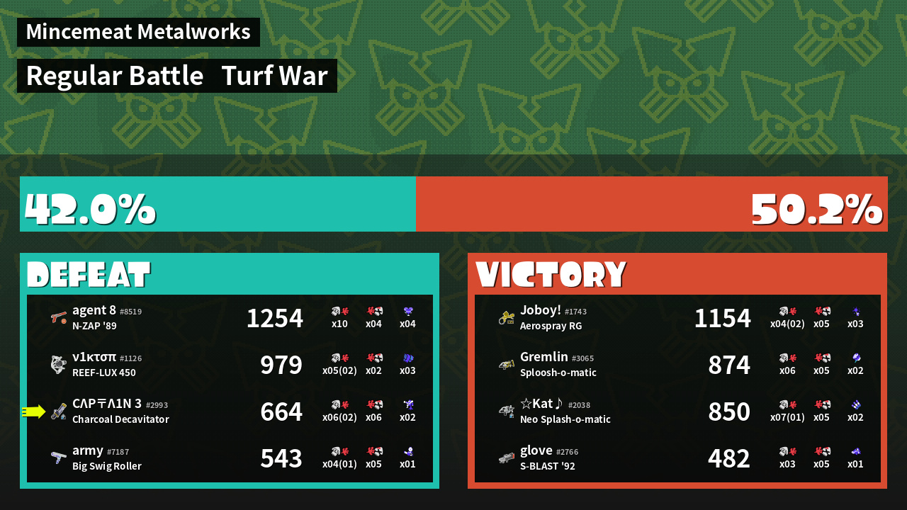 | Weapon | Charcoal Decavitator ( Splash Wall / Inkjet) | ||