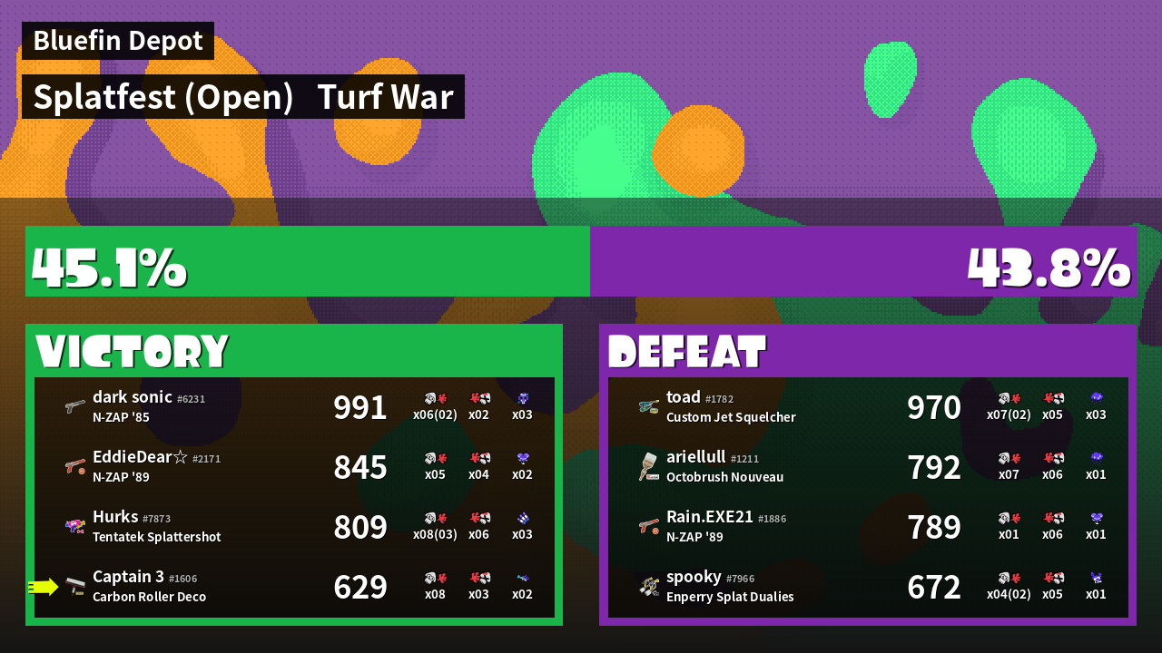 | Medals | #1 Overall Splatter #1 Popular Target #1 Enemy-Base Inker | ||