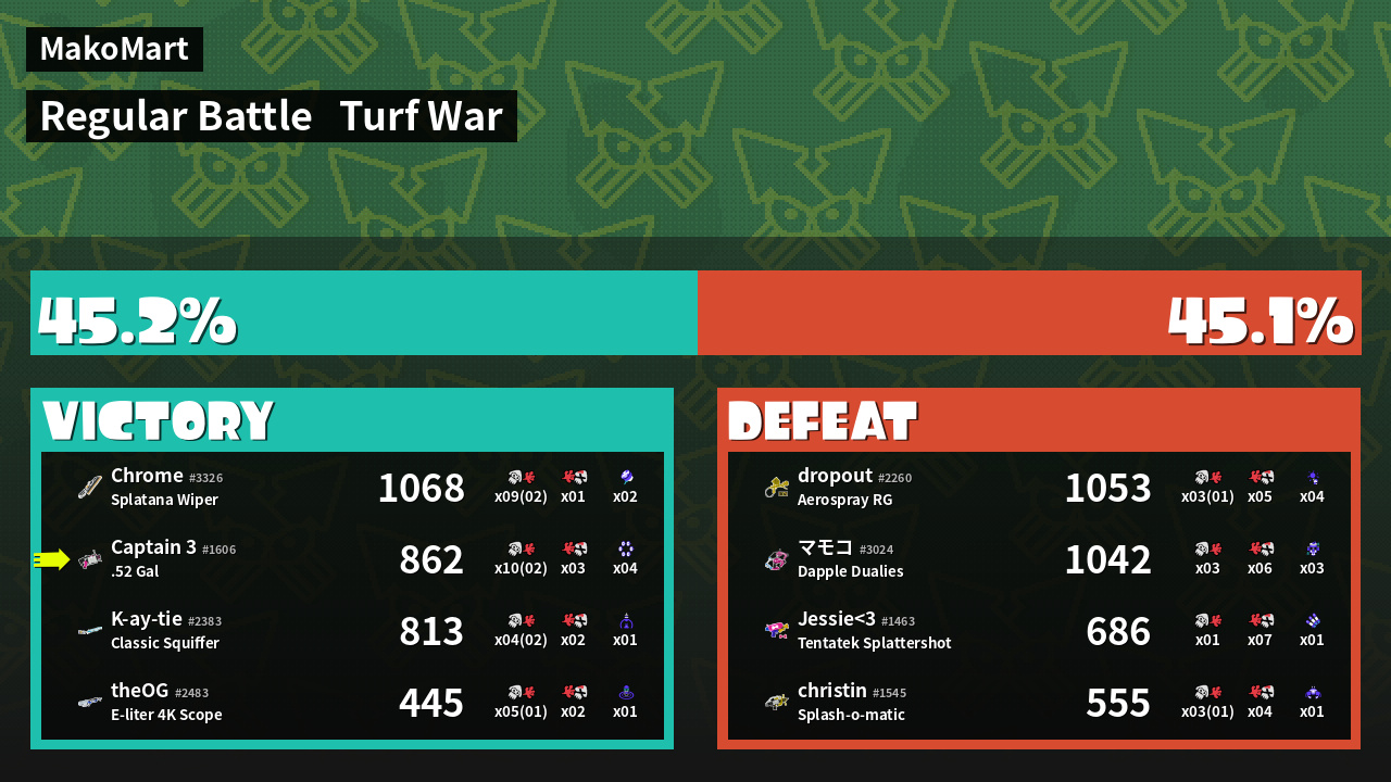 | Medals | #1 Overall Splatter #1 Home-Base Inker #1 Enemy Splatter | ||