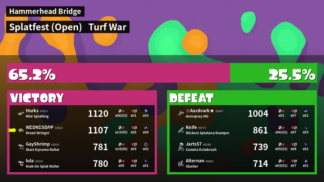 | Medals | #1 Popular Target #1 Enemy-Base Inker #1 Damage Taker | ||