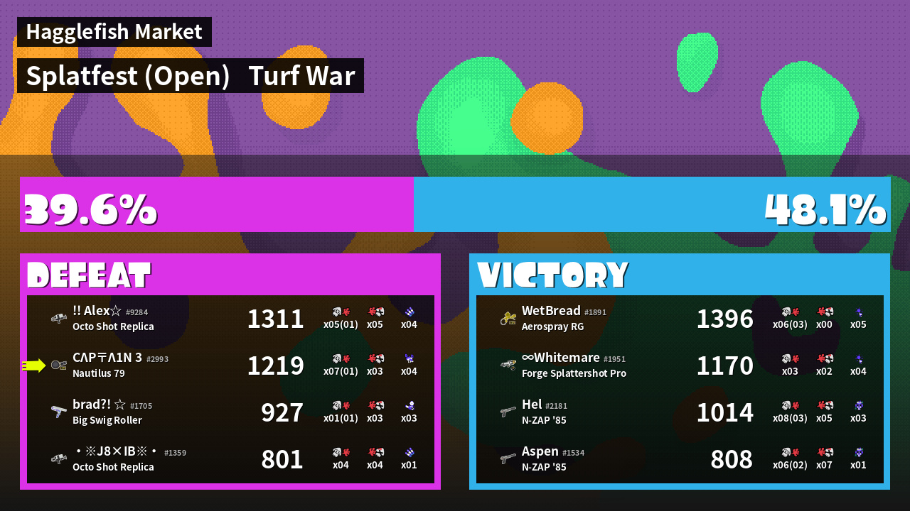 | Medals | #1 Overall Splatter #1 Enemy-Base Inker #1 Enemy Splatter | ||