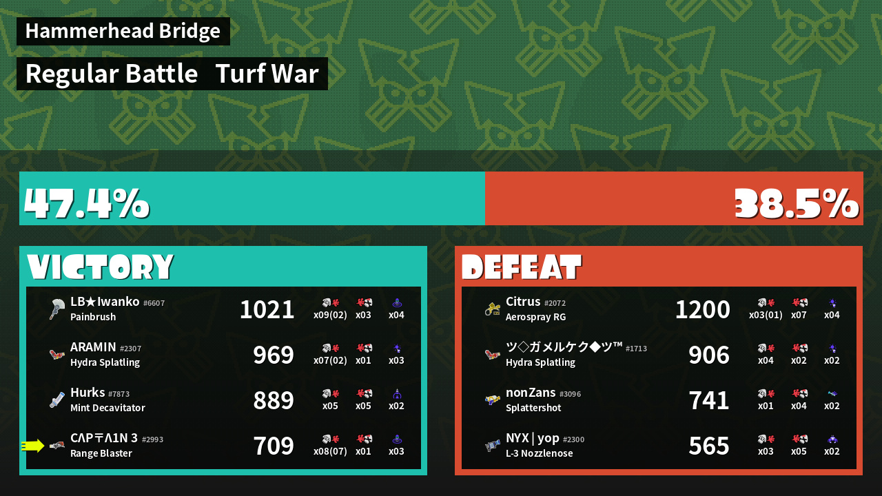 | Medals | #1 Super Jump Spot #1 Splat Assister #1 Damage Taker | ||