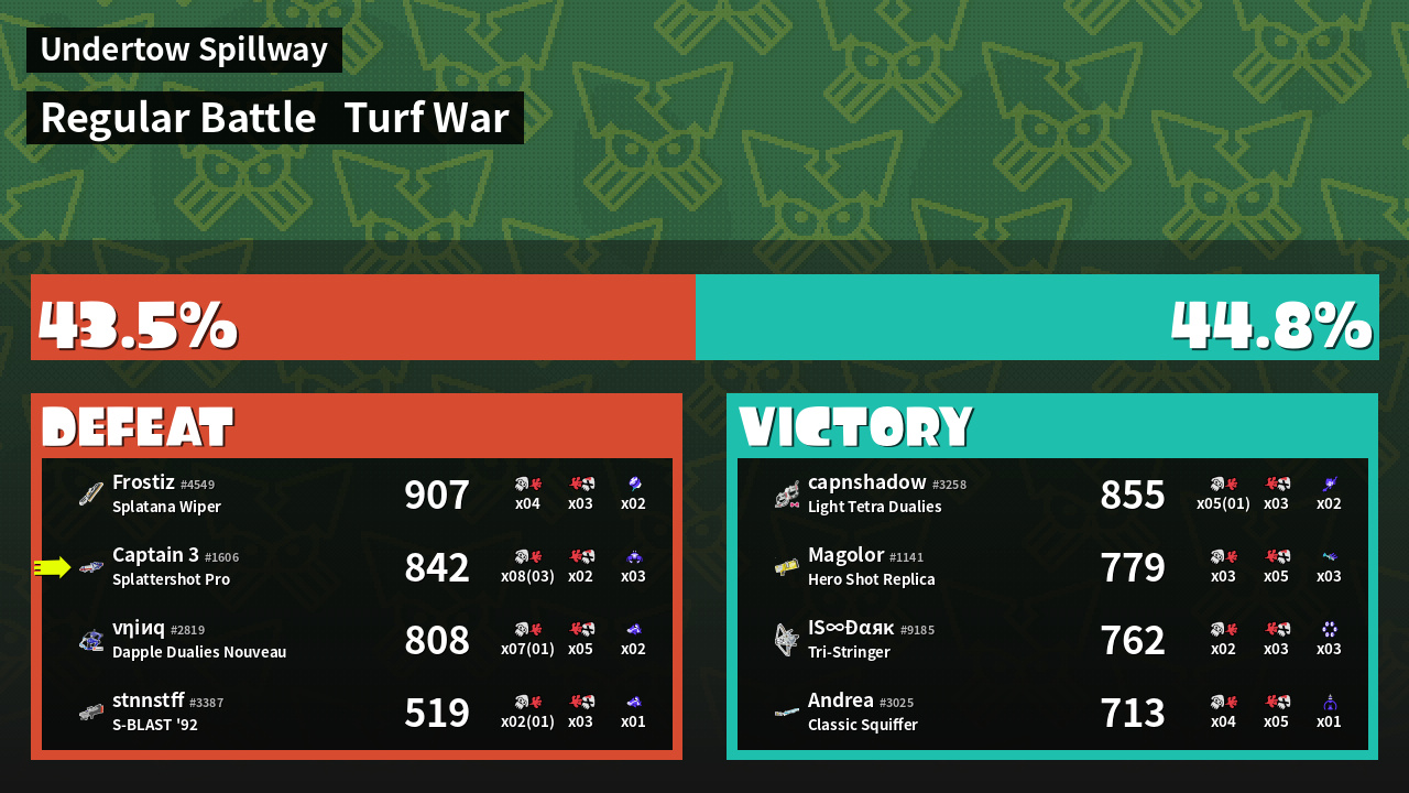 | Medals | #1 Overall Splatter #1 Home-Base Inker #1 Splat Assister | ||