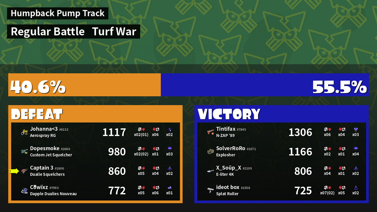 | Medals | #1 Overall Splatter #1 Popular Target #1 Enemy-Base Inker | ||