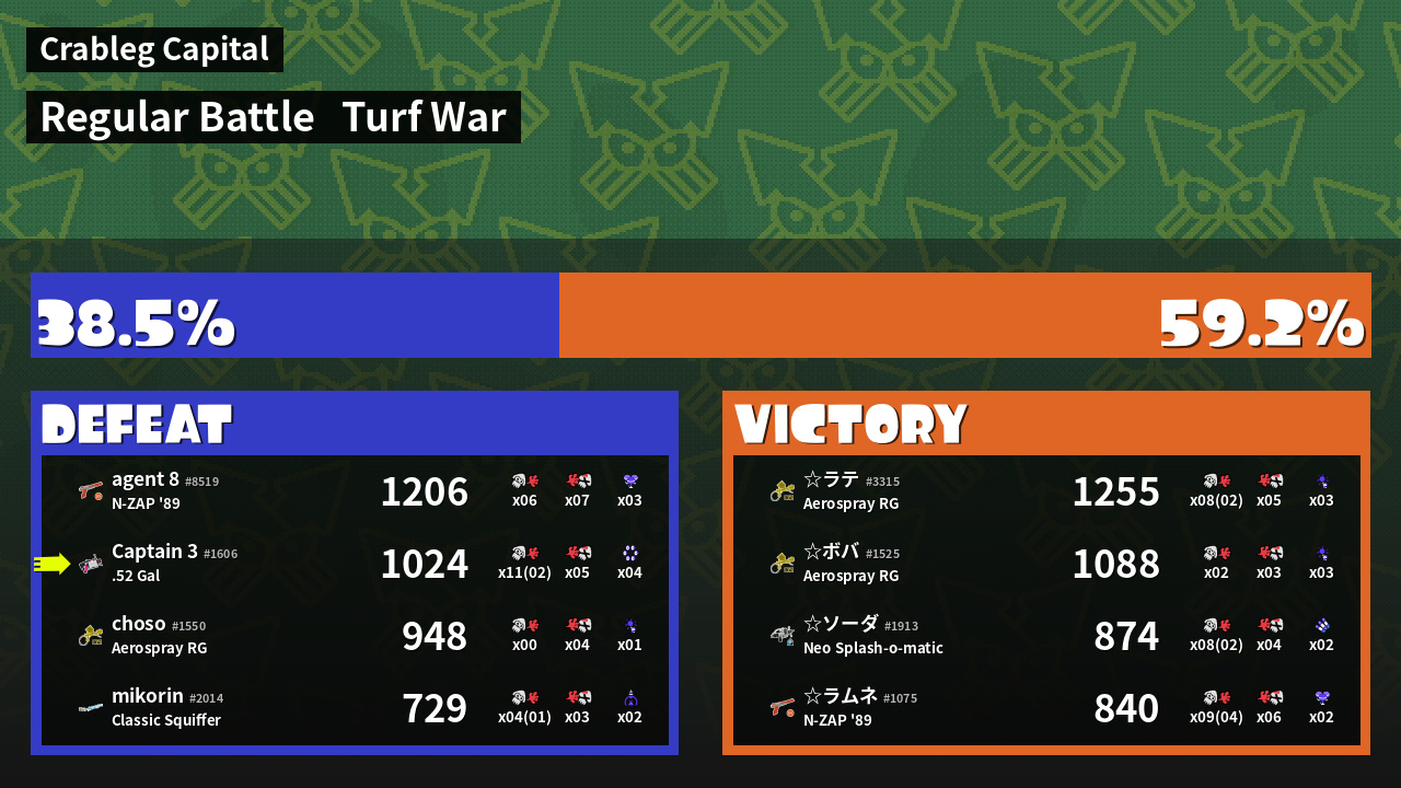 | Mode | Turf War - Regular Battle | ||