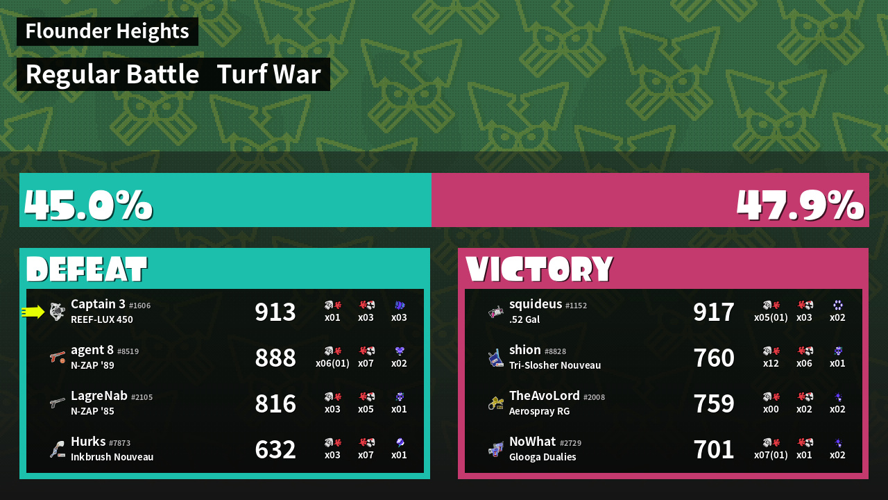 | Medals | #1 Turf Inker #1 Ink Consumer #1 Tenta Missiles User | ||