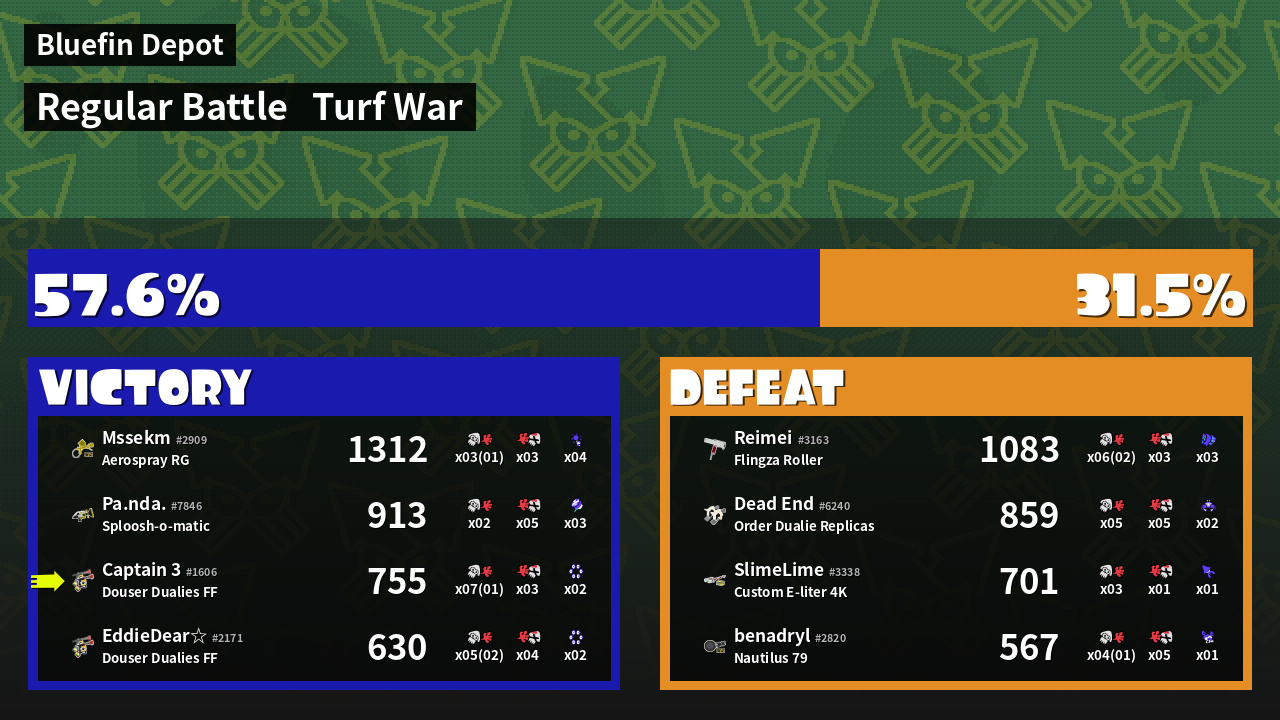 | Weapon | Douser Dualies FF ( Ink Mine / Killer Wail 5.1) | ||