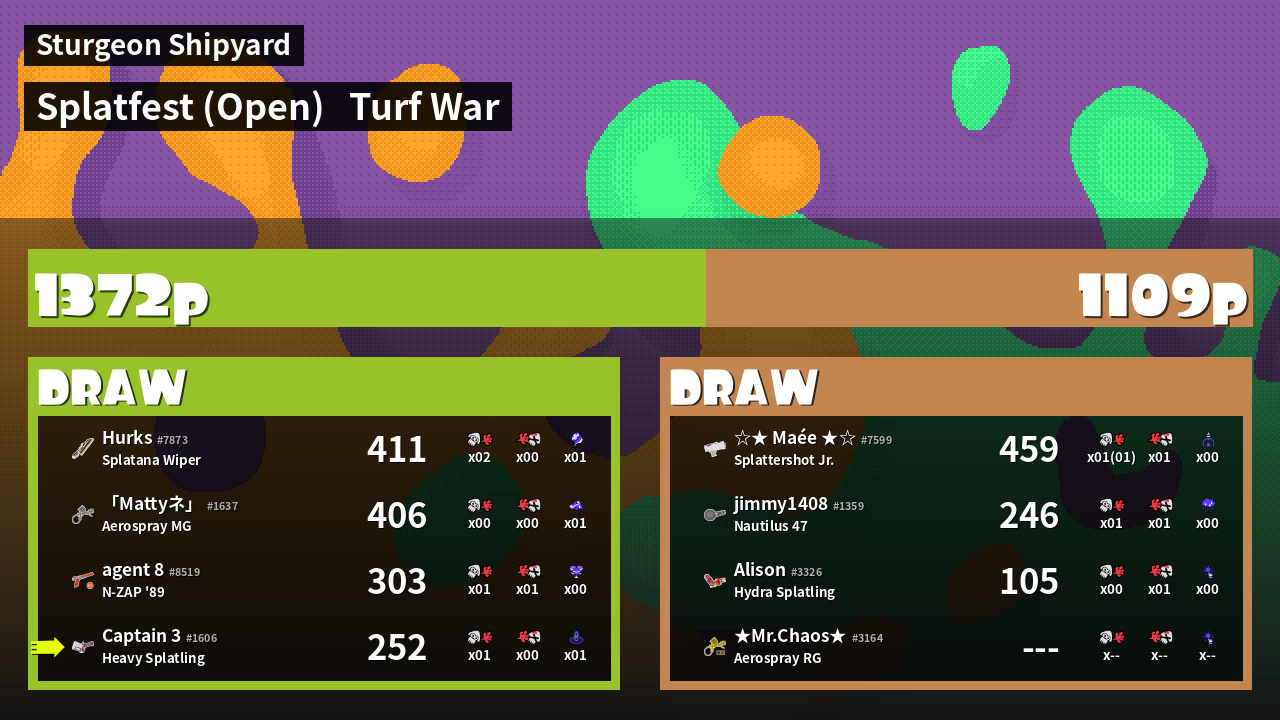 | Mode | Turf War - Splatfest (Open) | ||