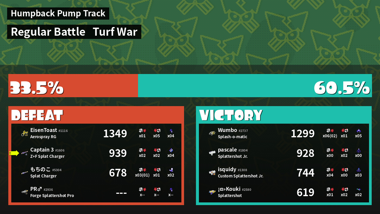 | Mode | Turf War - Regular Battle | ||