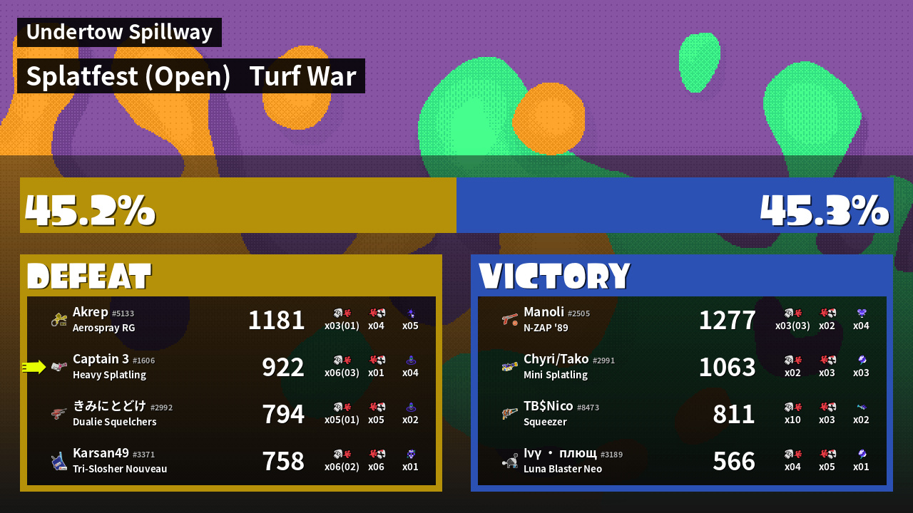 | Medals | #1 Overall Splatter #1 Popular Target #1 Splat Assister | ||