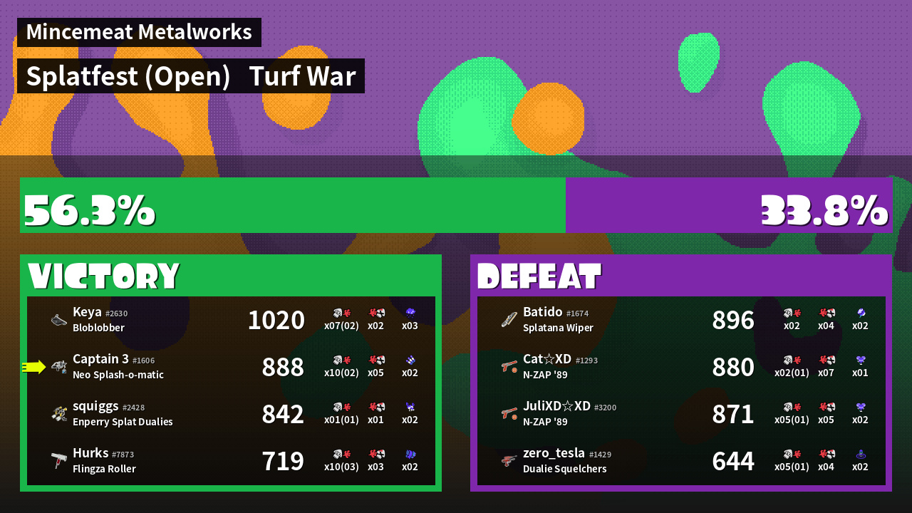 | Medals | #1 Overall Splatter #1 Popular Target #1 Enemy-Base Inker | ||