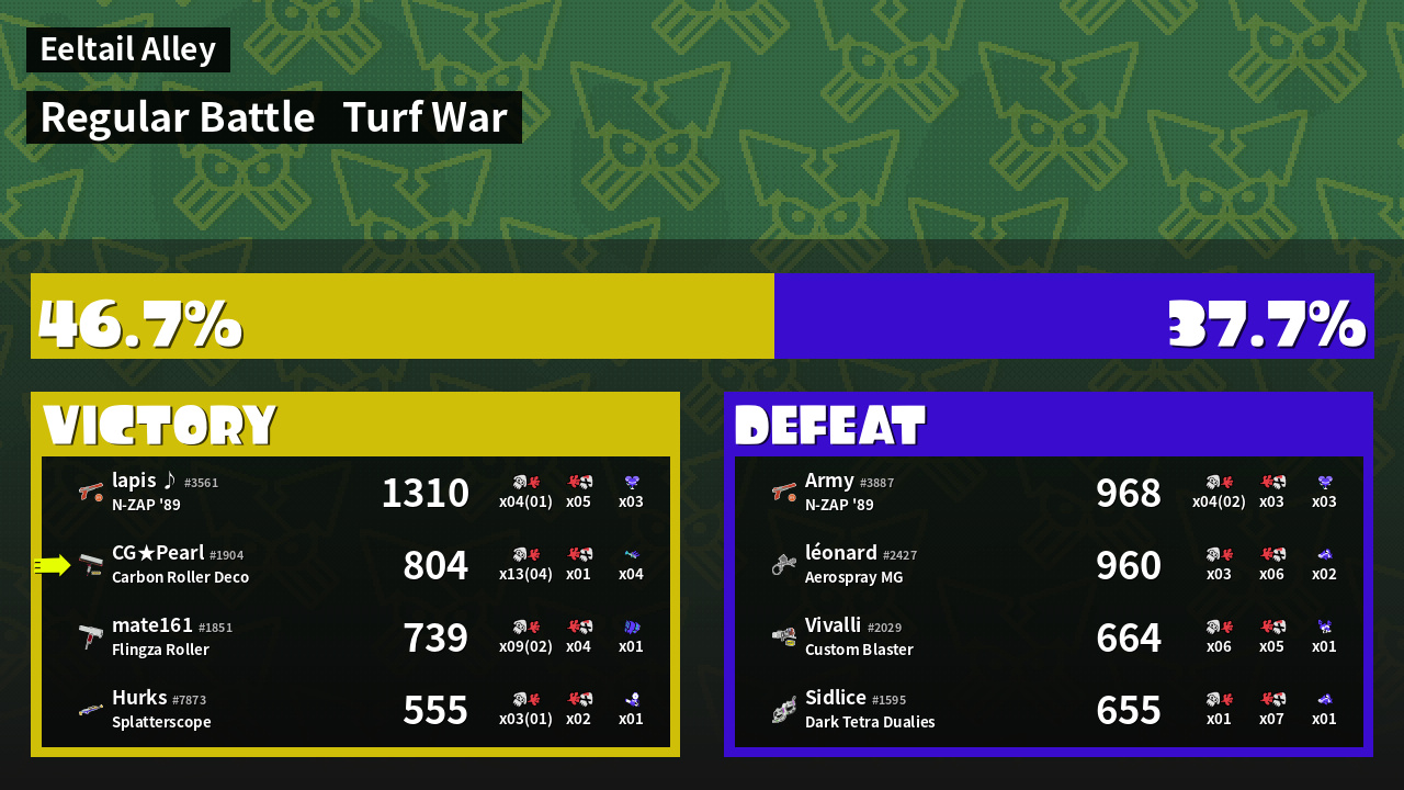 | Medals | #1 Overall Splatter #1 Enemy Splatter #1 Splat Assister | ||